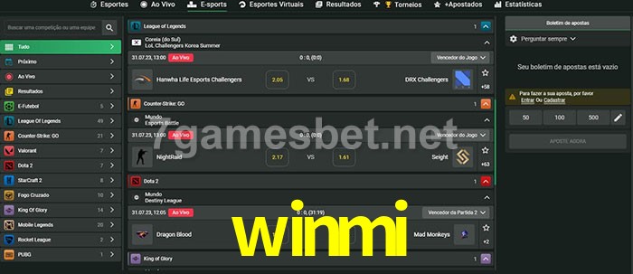A aposta winmi oferece aos jogadores a experiência mais conveniente de apostas em eSports!